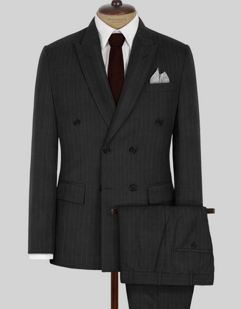 Kingsman Double Breasted Charcoal Stripe Suit